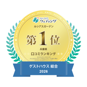 この度、先輩花嫁様やゲスト様の口コミにより、大手口コミサイトにて[兵庫県ゲストハウス 年間ランキング1位 ]に選ばれました。