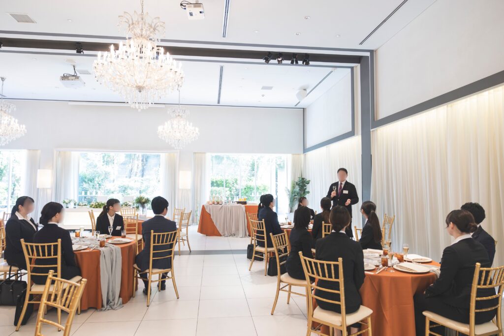 輝くチャペルで迎えた入社式は、一人ひとりの夢と未来を祝福する感動的な瞬間でした。真剣な表情が並ぶ中、誓いを胸に刻む姿は新たな物語の始まりを思わせます。式後の食事会では緊張が解け、笑顔と温かな拍手が広がり、心をつなぐ大切なひとときとなりました。